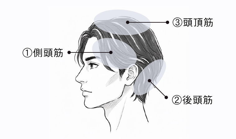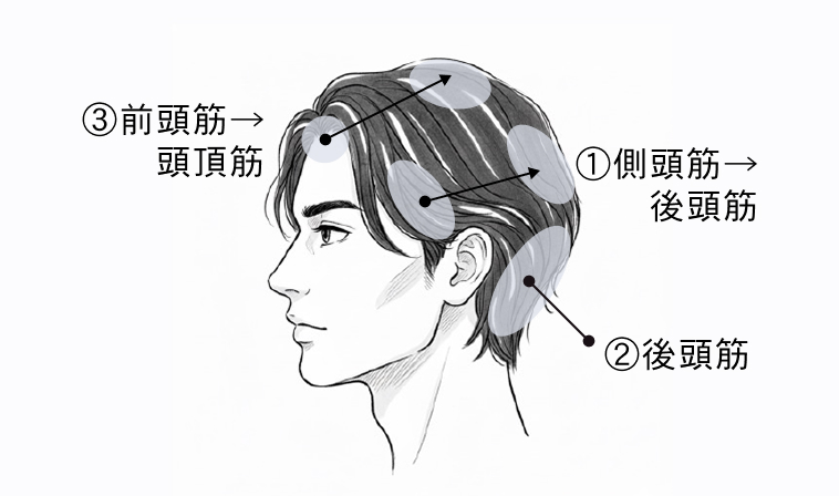 そのまま後頭部に向かって斜め上に引き上げるようにもみこむ