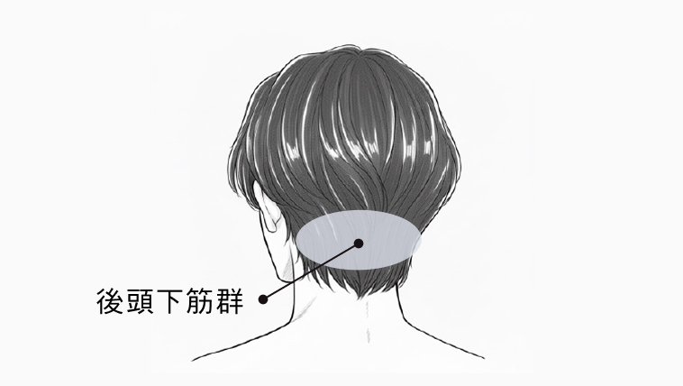 [ STEP 03 ]商品を両手で持ちながら、後頭部の「後頭下筋群」を重点的に刺激